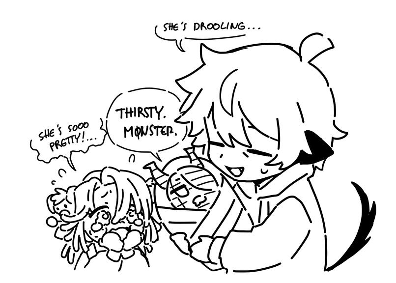 sometimes i will open requests on twitter posts when i want to draw people's ocs. you can also request for me to draw something on twitch using channel points, though it's expensive.what are your pronouns?